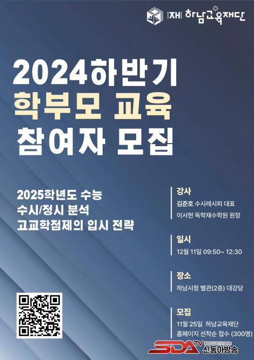 [½Åµ¿¾Æ¹æ¼Û Çϳ²½Ã=À̽ŵ¿±âÀÚ] Çϳ²±³À°Àç´ÜÀº ¿À´Â 12¿ù 11ÀÏ ¿­¸®´Â ¡®2024³â ÇϹݱâ Çкθ𠱳À°-2025Çг⵵ ¼ö´É ºÐ¼® ¹× ¼ö½Ã¡¤Á¤½Ã Àü·« ¼³¸íȸ¡¯¿¡ Âü¼®ÇÒ Âü¿© Èñ¸ÁÀÚ 300¸íÀ» ÀÌ´Þ 25ÀϺÎÅÍ ¼±Âø¼ø ¸ðÁýÇÑ´Ù°í ¹àÇû´Ù.