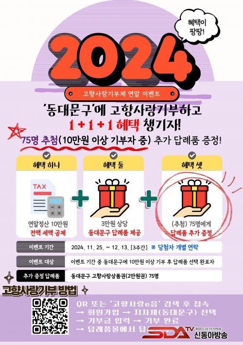 [½Åµ¿¾Æ¹æ¼Û µ¿´ë¹®±¸=À̽ŵ¿±âÀÚ] ¼­¿ï µ¿´ë¹®±¸´Â ¿¬¸»À» ¸Â¾Æ °íÇâ»ç¶û±âºÎÁ¦¸¦ È«º¸ÇÏ°í °ÇÀüÇÑ ±âºÎ¹®È­¸¦ Á¶¼ºÇϱâ À§ÇØ 11. 25.(¿ù)ºÎÅÍ 12. 13.(±Ý)±îÁö 3ÁÖ µ¿¾È ¡®Ãß°¡ ÁõÁ¤ À̺¥Æ®¡¯¸¦ ½Ç½ÃÇÑ´Ù°í ¹àÇû´Ù.
