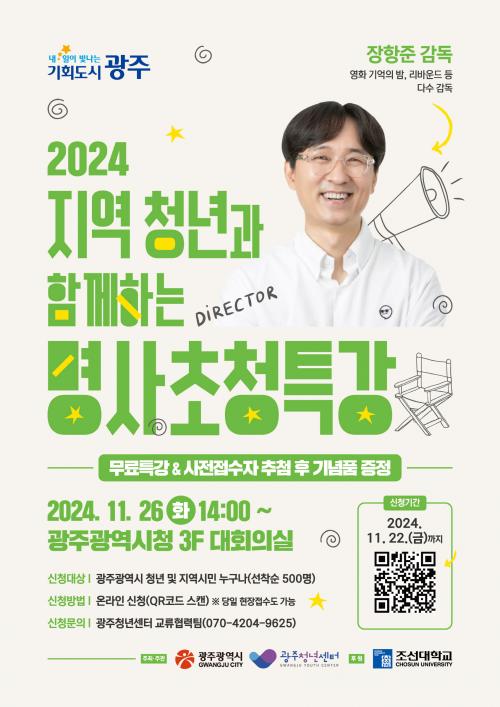 À̹ø Ư°Àº ±¤ÁÖ½Ã¿Í ±¤ÁÖû³â¼¾ÅͰ¡ ÁÖÃÖ¡¤ÁÖ°üÇϰí Á¶¼±´ëÇб³°¡ ÈÄ¿øÇØ ¹«·á·Î ÁøÇàµÇ¸ç, Ư° Âü¿©¸¦ Èñ¸ÁÇϴ û³â°ú ½Ã¹ÎµéÀº ´çÀÏ ÇöÀå Á¢¼öÇÏ¸é µÈ´Ù.