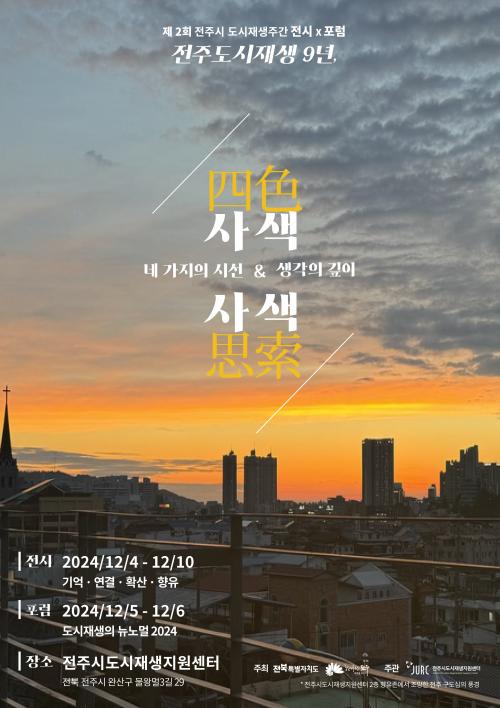 2ȸ°¸¦ ¸ÂÀÌÇÑ ÀÌ Çà»ç´Â µµ½ÃÀç»ý»ç¾÷ÀÇ ¹æÇ⼺À» Àü´ÞÇϰí, 2025³â ÀüÁÖµµ½ÃÀç»ý »ç¾÷ 10ÁÖ³âÀ» ¾ÕµÎ°í 9³â°£ÀÇ ¹ßÀÚÃ븦 Á¶¸íÇϱâ À§ÇØ ¡®»ç»ö(ÞÌßä) & »ç»ö(ÞÖßã); ³× °¡ÁöÀÇ ½Ã¼±°ú »ý°¢ÀÇ ±íÀÌ¡¯¸¦ ÁÖÁ¦·Î ÁøÇàµÈ´Ù.