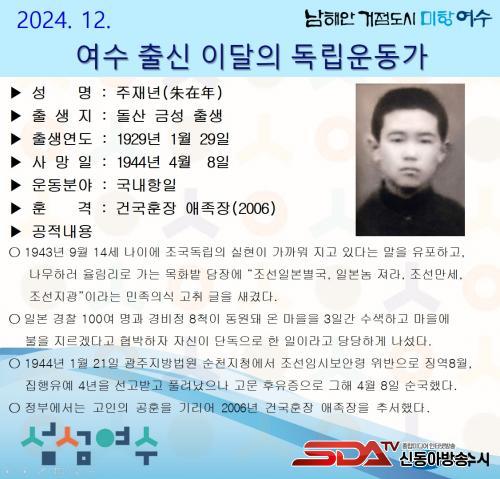 ÇÑÆí, ¿©¼ö½Ã´Â µ¶¸³¿îµ¿ÀÇ ¿ª»çÀû °¡Ä¡¸¦ ÀçÁ¶¸íÇϱâ À§ÇØ µ¶¸³¿îµ¿°¡À¯Á·È¸¿Í °øµ¿À¸·Î ¿©¼ö Ãâ½Å µ¶¸³¿îµ¿°¡¸¦ ¹ß±¼¡¤¼±Á¤ÇÏ¿© ¸Å¿ù ½Ãû ´©¸®Áý, °ø°ø±â°ü µî¿¡ °Ô½ÃÇϰí ÀÖÀ¸¸ç, ÇöÀç±îÁö µ¶¸³¿îµ¿°¡ 83¸íÀ» Ãß¼Çß´Ù.