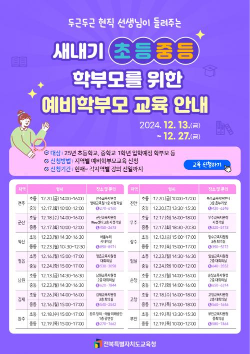 À̹ø ±³À°Àº °¢°¢ ÃʵîÇб³¿Í ÁßÇб³ ¿¹ºñ Çкθ𸦠´ë»óÀ¸·Î Áö¿ªº° ÃÑ 28ȸ¿¡ °ÉÃÄ ¿î¿µµÇ¸ç, Áö¿ªº° ÀÏ½Ã¿Í Àå¼Ò´Â °¢ Áö¿ª±³À°Áö¿øÃ» ´©¸®Áý ¹× ÀüºÏÇкθðÁö¿ø¼¾ÅÍ ´©¸®Áý¿¡¼ È®ÀÎÇÒ ¼ö ÀÖ´Ù. Âü¿© ½Åû ¿ª½Ã ÀüºÏÇкθðÁö¿ø¼¾ÅÍ ´©¸®ÁýÀ» ÅëÇØ ÇÏ¸é µÈ´Ù.