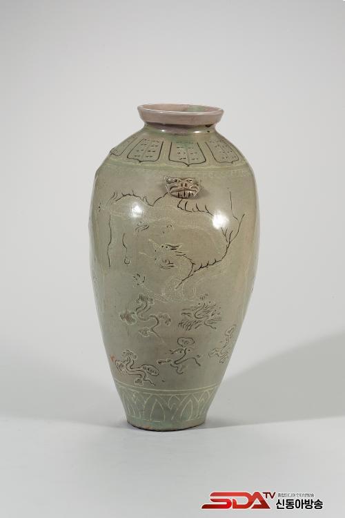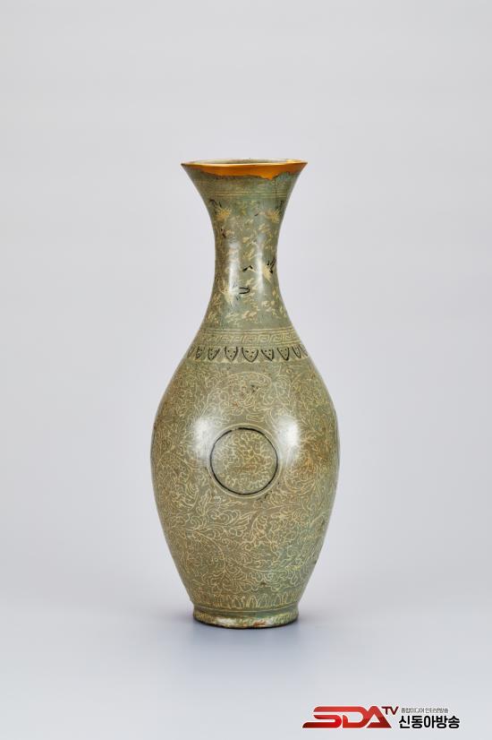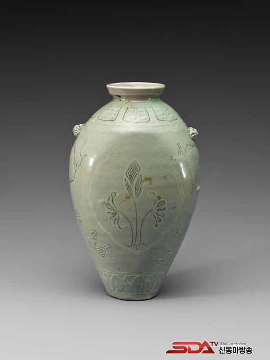 °í·Á Á߱⿡ Á¦ÀÛµÈ ¸Åº´ÀÇ ÇüÅÂ¿Í ¹®¾çÀ» Àß º¸¿©ÁÖ´Â À¯¹°ÀÌ´Ù. ¸Åº´ ÇüŰ¡ ¹Ù´Ú¿¡¼ µÕ±Ù ¾î±ú±îÁö °ÅÀÇ Á÷¼±¿¡ °¡±õ°Ô À̾îÁö°í, ¸öü¿¡ ºñÇØ ±¸¿¬ÀÌ ¸Å¿ì Á¼°í ÀÛÀº °ÍÀÌ Æ¯Â¡ÀÌ´Ù. ÀüüÀûÀ¸·Î À¯¾àÀÌ ³ì°¥»öÀ» ¶ì±â´Â ÇÏÁö¸¸, ¹®¾çÀÇ ½Ã¹® »óųª ¼ºÇü »óÅ´ ¿Õ½Ç ¼Ò¿ëÀÇ Ã»ÀÚ¿´À» °ÍÀ¸·Î ÃßÁ¤µÈ´Ù. ¸öü Àü¸é¿¡ ¸ð¶õ ³ÕÄðÀ» ¹èÄ¡Çϰí, ³ÕÄð »çÀÌ¿¡ ±ä ²¿¸®¸¦ ´Ã¾î¶ß¸®¸ç ³¯°í ÀÖ´Â ¾Þ¹«¸¦ »õ°å´Ù.