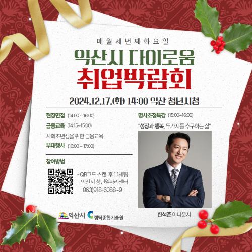 ÇÑÆí, ÀÍ»ê½Ã´Â Áö³ÇغÎÅÍ ÀÏÀÚ¸® Á¤Ã¥ÀÇ Çϳª·Î ¸Å¿ù û³â½Ãû¿¡¼ ´ÙÀ̷οò Ãë¾÷¹Ú¶÷ȸ¸¦ ÃßÁøÇϰí ÀÖ´Ù. ³»³âºÎÅÍ Ãë¾÷¹Ú¶÷ȸ¸¦ ¦¼ö¿ù °³ÃÖ·Î º¯°æÇØ ±Ô¸ð¸¦ Ű¿ì°í ³»½ÇÀ» °ÈÇÒ ¿¹Á¤ÀÌ´Ù.