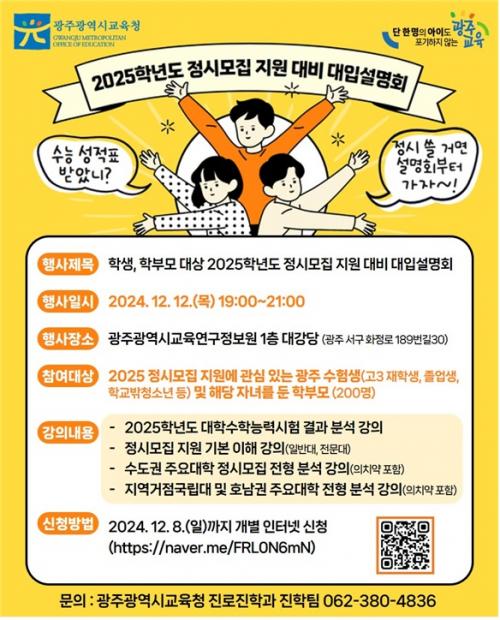±¤ÁÖÁø·ÎÁøÇÐÁö¿ø´Ü ÁøÇÐÁ¤º¸ºÐ¼®ÆÀ ±³»çµéÀº ¿ÃÇØ ¼ö´É °á°ú ºÐ¼®, Á¤½Ã¸ðÁý(ÀϹݴë, Àü¹®´ë) Áö¿ø ±âº» ÀÌÇØ, Áö¿ª°ÅÁ¡±¹¸³´ë ¹× È£³²±Ç ÁÖ¿ä´ëÇÐ ÀüÇü ºÐ¼®¿¡ ´ëÇØ ¼³¸íÇÒ ¿¹Á¤ÀÌ´Ù. ¶Ç Âü¼®Àڵ鿡°Ô ¼ö´É °á°ú ºÐ¼® ÀÚ·á¿Í Á¤½Ã ¹èÄ¡ Âü°íÀڷḦ Á¦°øÇÑ´Ù.