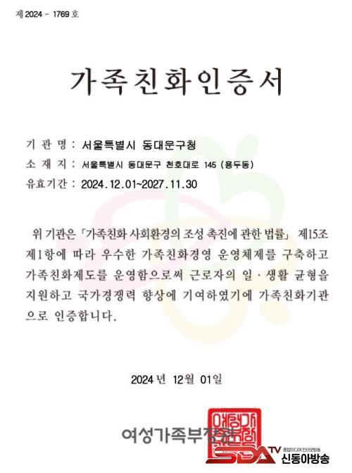 ÀÌÇÊÇü µ¿´ë¹®±¸Ã»ÀåÀº ¡°µ¿´ë¹®±¸°¡ 2013³â ÀÌ·¡ ¡®°¡Á·Ä£È±â°ü¡¯À¸·Î ÀÎÁ¤ ¹Þ°í ÀÖ´Â »ç½Ç¿¡ Å« ÀںνÉÀ» ´À³¤´Ù¡±¸ç ¡°°¡Á· Ä£ÈÀûÀÌ°í °Ç°ÇÑ Á÷Àå¹®È Á¶¼ºÀ» À§ÇØ °è¼Ó ³ë·ÂÇÒ °Í¡±À̶ó°í ¸»Çß´Ù.