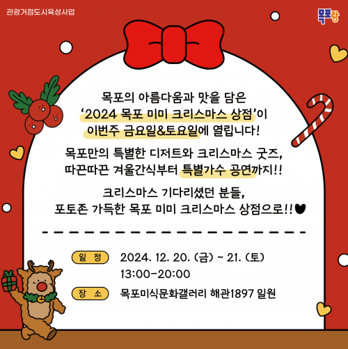 Áö³ÇØ¿¡ ÀÌ¾î µÎ ¹øÂ°·Î °³ÃֵǴ À̹ø Çà»ç´Â ¾Æ¸§´ä°í ¸ÀÀÖ´Â µµ½Ã ¸ñÆ÷¸¸ÀÇ °¨¼ºÀ» ´ãÀº ¸Ô°Å¸®¿Í ±ÂÁî(ÆÒ »óǰ)°¡ ÀÖ´Â Çø®¸¶ÄÏ(º·è½ÃÀå)¿¡ Å©¸®½º¸¶½º ºÐÀ§±â¸¦ ´õÇØ ¸ñÆ÷¸¸ÀÇ Æ¯»öÀÖ´Â °æÇèÀ» ¼±º¸ÀÏ °èȹÀÌ´Ù.