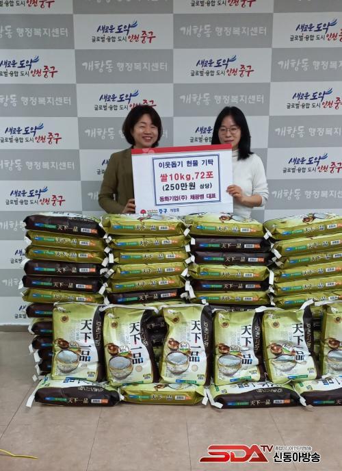 [½Åµ¿¾Æ¹æ¼Û ÀÎõ=À±¹Î½Ä±âÀÚ] ÀÎõ Áß±¸ °³Ç×µ¿Àº Ãß¼®À» ¸ÂÀÌÇØ ÃÖ±Ù µ¿È­±â¾÷¢ß(䱤º´ ´ëÇ¥)¿¡¼­ °³Ç×µ¿ Àú¼Òµæ Ãë¾à°èÃþÀ» À§ÇØ ½Ò 720kg(250¸¸ ¿ø »ó´ç)À» ±âŹÇß´Ù°í 10ÀÏ ¹àÇû´Ù.