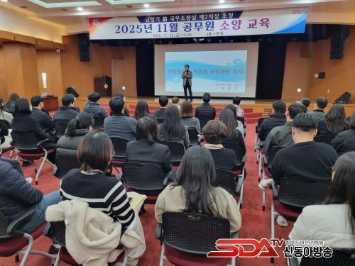 [½Åµ¿¾Æ¹æ¼Û °æ³²ÁøÁÖ=±è¸í¼ö±âÀÚ] ÁøÁֽô 28ÀÏ ½Ãû 2Ãþ ½Ã¹ÎȦ¿¡¼­ °ø¹«¿ø 150¿© ¸íÀÌ Âü¼®ÇÑ °¡¿îµ¥ ³²Çü±â Àü(îñ) ±¹¹«Á¶Á¤½Ç Á¦2Â÷ÀåÀ» ÃÊÃ»ÇØ ¡®°ø¹«¿ø ¼Ò¾ç±³À°¡¯À» ½Ç½ÃÇß´Ù.