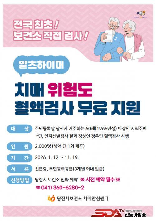 [½Åµ¿¾Æ¹æ¼Û=ÀÌÀçö±âÀÚ] ´çÁø½Ã´Â 60¼¼ ÀÌ»ó Áö¿ª ÁÖ¹ÎÀ» ´ë»óÀ¸·Î 2026³âµµ ¾ËÃ÷ÇÏÀÌ¸Ó À§Çèµµ Ç÷¾×°Ë»ç Áö¿ø»ç¾÷À» 12ÀϺÎÅÍ ½ÃÇàÇÑ´Ù°í ¹àÇû´Ù.