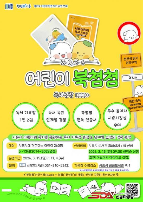 [½Åµ¿¾Æ¹æ¼Û ½ÃÈï½Ã=À̽ŵ¿±âÀÚ] ½ÃÈï½Ã ¼Ò·¡ºûµµ¼­°üÀº ¿À´Â 3¿ù 15ÀϺÎÅÍ °ü³» 5~13¼¼ ¾î¸°ÀÌ 260¸íÀ» ´ë»óÀ¸·Î µ¶¼­ ±â·ÏÀåÀ» ¹èºÎÇϰí, ¿ì¼ö Âü¿©ÀÚ 8¸í¿¡°Ô ½ÃÈï½ÃÀå»óÀ» ¼ö¿©ÇÏ´Â µ¶¼­»ç¾÷ ¡®2026 ¾î¸°ÀÌ ºÏ«†«† µ¶¼­¼ºÀå 1000+¡¯¸¦ ¿î¿µÇÑ´Ù.