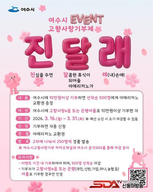 ¿©¼ö½Ã, °íÇâ»ç¶û±âºÎÁ¦ Áø¡¤´Þ¡¤·¡ À̺¥Æ® ÁøÇࡦ 3¿ù 31ÀϱîÁö