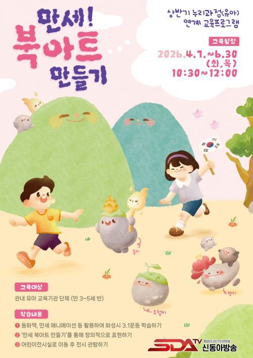 ±³À°Àº µ¿È­Ã¥°ú ¸¸¼¼ ¾Ö´Ï¸ÞÀÌ¼Ç µî ½Ãû°¢ ÀڷḦ Ȱ¿ëÇØ È­¼º½Ã 3¡¤1¿îµ¿ À̾߱⸦ ¹è¿ì´Â ½Ã°£À¸·Î ½ÃÀ۵ȴÙ. ÀÌ¾î ±³±¸Àç Ȱµ¿À» ÅëÇØ ÇнÀ ³»¿ëÀ» ÀÚ¿¬½º·´°Ô º¹½ÀÇϰí, °¨°¢ ½ºÆ¼Ä¿¸¦ Ȱ¿ëÇÑ ¡®³ª¸¸ÀÇ ºÏ¾ÆÆ® ¸¸µé±â¡¯ üÇèÀÌ ÁøÇàµÈ´Ù.