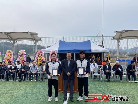°³È¸½Ä¿¡¼­´Â Ã౸ ¹ßÀü°ú »ýȰüÀ° Ȱ¼ºÈ­¿¡ ±â¿©ÇÑ °øÀ» ÀÎÁ¤¹Þ¾Æ ÁøÁÖ½ÃÃ౸Çùȸ ±Ç¿µ¹Î ¼ö¼®ºÎȸÀå°ú ¹Ú¼öö ºÎȸÀå¿¡°Ô ÁøÁÖ½ÃÀå °¨»çÆÐ¸¦, ÇÏ»ó±Ù À̻翡°Ô´Â ÁøÁÖ½ÃüÀ°È¸Àå °ø·ÎÆÐ¸¦ ¼ö¿©Çß´Ù.