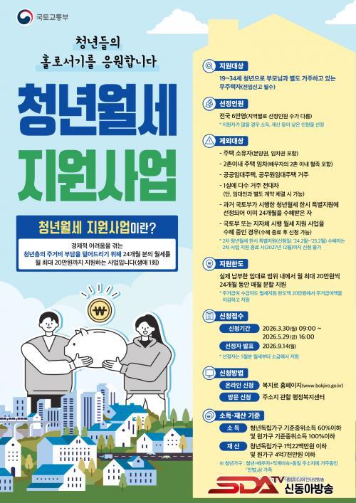 Áö¿ø ´ë»óÀº ¸¸ 19¼¼ºÎÅÍ 34¼¼ ÀÌÇÏÀÇ Ã»³âÀ¸·Î, ºÎ¸ð¿Í º°µµ·Î °ÅÁÖÇÏ´Â ¹«ÁÖÅÃÀÚ¿©¾ß Çϸç ÀüÀÔ½Å°í°¡ Çʼö´Ù. Áö¿ø ³»¿ëÀº »ý¾Ö 1ȸ ÇÑÇØ ½ÇÁ¦ ³³ºÎÇÑ ÀÓ´ë·á ¹üÀ§ ³»¿¡¼­ ¿ù ÃÖ´ë 20¸¸ ¿ø¾¿, ÃÖ´ë 24°³¿ù µ¿¾È ºÐÇÒ Áö±ÞµÈ´Ù.