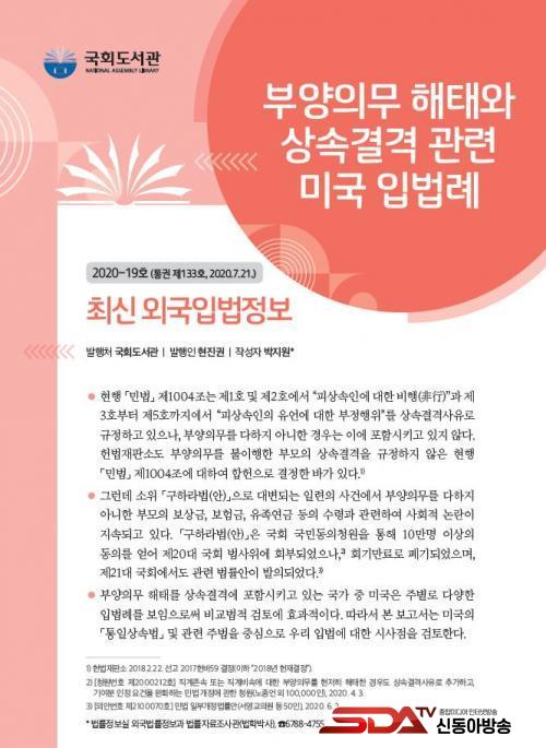 [½Åµ¿¾Æ¹æ¼Û=³²»ó¹Î ±âÀÚ] ±¹È¸µµ¼­°ü(°üÀå ÇöÁø±Ç)Àº 7¿ù 21ÀÏ(È­) "ºÎ¾çÀǹ« ÇØÅÂ¿Í »ó¼Ó°á°Ý °ü·Ã ¹Ì±¹ ÀÔ¹ý·Ê"¸¦ ¼Ò°³ÇÑ "Ãֽſܱ¹ÀÔ¹ýÁ¤º¸" (2020-19È£, Á¦133È£)¸¦ ¹ß°£Çß´Ù.