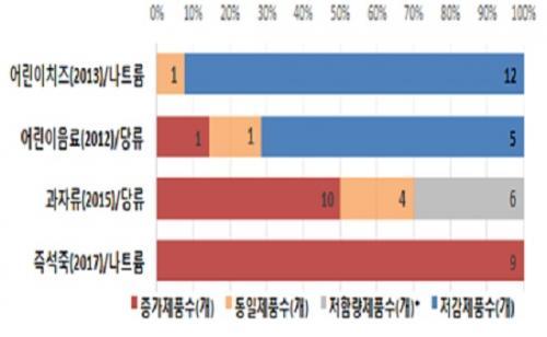 ´ç·ù ÇÔ·® Àú°¨ °èȹÀ» Á¦ÃâÇÑ 20°³ Á¦Ç° Áß 14°³(70%) Á¦Ç°ÀÌ Àú°¨ÈµÆ°í, ³ªÆ®·ý ÇÔ·® Àú°¨ °èȹÀ» Á¦ÃâÇÑ 31°³ Á¦Ç° Áß 13°³(42%) Á¦Ç°¸¸ Àú°¨ÈµÈ °ÍÀ¸·Î È®ÀεƴÙ.