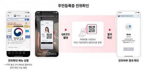 PASS ¡®Áֹεî·ÏÁõ ¸ð¹ÙÀÏ È®Àμºñ½º¡¯´Â ¿ÜºÎ ±â°ü¿¡ Á¦½ÃÇÒ ¶§ À°¾ÈÀ¸·Îµµ È®ÀÎÀÌ °¡´ÉÇÏÁö¸¸, ÇÊ¿äÇÑ °æ¿ì Á¤ºÎ24¾Û¿¡ µé¾î°¡ ¸ð¹ÙÀÏ ½ÅºÐÁõ QRÄڵ带 ÃÔ¿µÇØ ÁøÀ§¿©ºÎ¸¦ È®ÀÎÇÒ ¼ö ÀÖ´Ù.