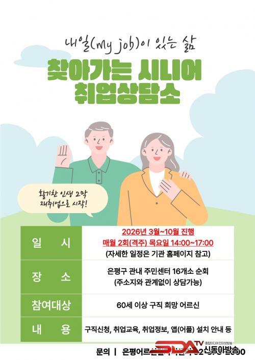 [½Åµ¿¾Æ¹æ¼Û ÀºÆò±¸=À̽ŵ¿±âÀÚ] ¼­¿ï ÀºÆò±¸´Â 60¼¼ ÀÌ»ó ÀçÃë¾÷À» Èñ¸ÁÇÏ´Â ½Ã´Ï¾î¸¦ ´ë»óÀ¸·Î ¡®Ã£¾Æ°¡´Â ½Ã´Ï¾î Ãë¾÷»ó´ã¼Ò¡¯¸¦ ´ÙÀ½ ´ÞºÎÅÍ 10¿ù±îÁö ¿î¿µÇÑ´Ù°í ¹àÇû´Ù.