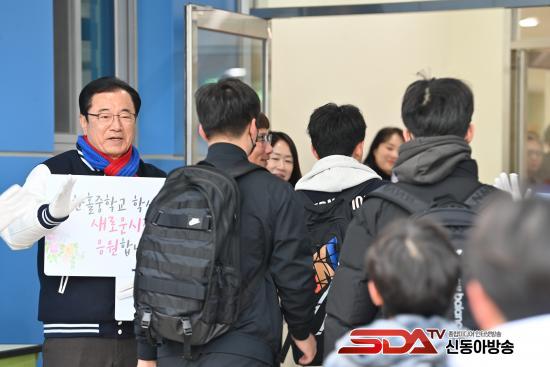 ÀÌÇöÀç Çϳ²½ÃÀåÀÌ 3ÀÏ ¿ÀÀü ½Å¼³µÈ ÇÑȦÁßÇб³ ÀÔ±¸¿¡¼­ µî±³ÇÏ´Â ½ÅÀÔ»ýµé¿¡°Ô ȯÇÑ ¹Ì¼Ò¿Í ÇÔ²² ÃàÇÏ Àλ縦 °Ç³×°í ÀÖ´Ù. À̳¯ ÀÌÇöÀç ½ÃÀåÀº ÁßÇб³ »ýȰÀÇ Ã¹ ¹ßÀ» ³»µó´Â ¾ÆÀ̵é ÇÑ ¸í ÇÑ ¸í°ú ´«À» ¸ÂÃß¸ç ¼³·¹´Â ù Ãâ¹ßÀ» ÀÀ¿øÇß´Ù.