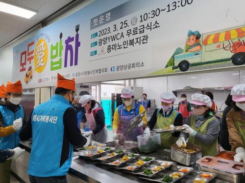 [½Åµ¿¾Æ¹æ¼Û=¹Ú±¤¿Á±âÀÚ] ±¤¾ç½Ã(±¤¾ç½ÃÀÚ¿øºÀ»ç¼¾ÅÍ)´Â Á߸¶³ëÀκ¹Áö°ü°ú Áö³­ 25ÀÏ ±¤¾çÀ¾ ¼ÒÀç ±¤¾çYWCA¿¡¼­ ¡®¸ðµÎäñ ¹äÂ÷¡¯ ù ¿î¿µÀ» ÆîÃÆ´Ù°í ¹àÇû´Ù. ¡®¸ðµÎäñ ¹äÂ÷¡¯´Â Àç³­¡¤ÀçÇØ ¹ß»ý ½Ã ½Å¼ÓÇÑ ÇÇÇØº¹±¸¸¦ À§ÇØ ÀÌÀç¹Î°ú ÀÚ¿øºÀ»çÀÚ¿¡°Ô ±Þ½ÄÀ» Áö¿øÇÏ°í¡¦