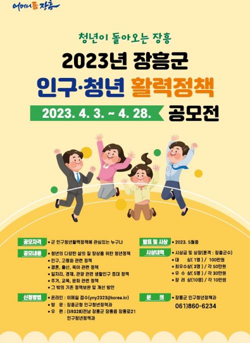 [½Åµ¿¾Æ¹æ¼Û=À̼±Á¾ ±âÀÚ] ÀåÈﱺÀº Áö¿ª ¸ÂÃãÇü 2023³â Àα¸¡¤Ã»³â Ȱ·ÂÁ¤Ã¥ °ø¸ðÀüÀ» ½Ç½ÃÇÑ´Ù°í ¹àÇû´Ù. À̹ø °ø¸ðÀüÀº »çȸÀû Àα¸ Áö¼ÓÀûÀÎ °¨¼Ò¿¡ µû¸¥ Áö¹æ¼Ò¸ê À§±â¸¦ ±Øº¹Çϱâ À§ÇØ Áö¿ªÆ¯¼º°ú Áֹο屸¿¡ ¸Â´Â Á¤Ã¥À» ¹ß±¼ÇϰíÀÚ ½Ç½ÃÇÑ´Ù. °ø¸ð¡¦