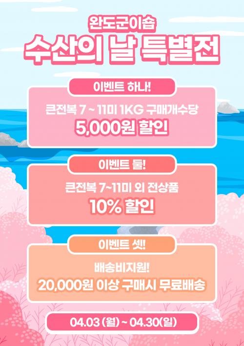 [½Åµ¿¾Æ¹æ¼Û=À̼±Á¾ ±âÀÚ] Àü³² ¿Ïµµ±º¿¡¼­´Â Àüº¹ µî ¼ö»ê¹° ¼Òºñ ÃËÁøÀ» À§ÇØ ¡®¼ö»êÀÇ ³¯ Ưº°Àü¡¯À» ½Ç½ÃÇÑ´Ù. Ưº°Àü´Â 4¿ù 3ÀϺÎÅÍ 4¿ù 30ÀϱîÁö ÁøÇàµÇ¸ç, ¿Ïµµ±º ¿Â¶óÀÎ ¼îÇθôÀÎ ¡®¿Ïµµ±ºÀ̼ó¡¯(www.wandofood.go.kr) ±âȹ°ü¿¡¼­ Å« Àüº¹(7~11¹Ì, 1kg)¡¦