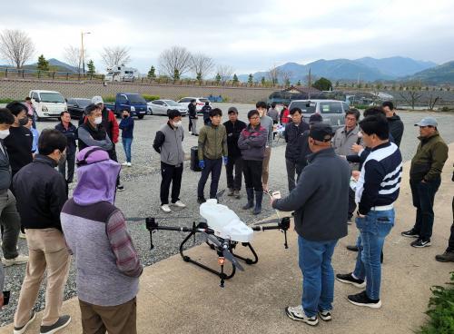 [½Åµ¿¾Æ¹æ¼Û=¹ÚÇü¼ö±âÀÚ]À强±ºÀÌ Ãֽбâ¼úÀÌ Àû¿ëµÈ ³ó¾÷¿ë µå·Ð ¹æÁ¦±â¸¦ ¼±º¸¿© À̸ñÀ» ²ø¾ú´Ù. 11ÀÏ Áö¿ª ³ó¾÷ÀÎ 30¿© ¸íÀÌ Âü¿©ÇÑ °¡¿îµ¥ ¿¬½Ãȸ¸¦ °®°í °ø±âÈíÀÔÇü ³ëÁñÀÌ ÀåÂøµÈ µå·Ð ¿î¿ë ½Ã¹üÀ» º¸¿´´Ù.  µå·ÐÀ» ÀÌ¿ëÇØ °øÁß¿¡¼­ ³ó¾àÀ» »ìÆ÷Çϸé ÀÛ¡¦