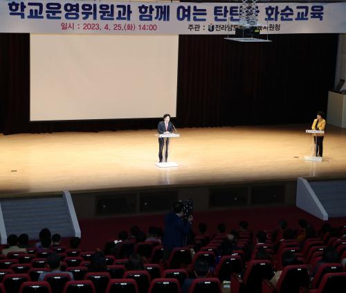 [½Åµ¿¾Æ¹æ¼Û Àü³²=À̽ŵ¿±âÀÚ] Àü¶ó³²µµ±³À°Ã»ÀÌ ¡®Çб³¿î¿µÀ§¿øÈ¸¿Í ÇкθðȸÀÇ Çб³±³À° Âü¿©¡¯ È®´ë¸¦ ÅëÇØ ¼ÒÅë°ú Çù·ÂÀÇ ±³À°°øµ¿Ã¼ ¸¸µé±â¿¡ ³ª¼±´Ù. Àü¶ó³²µµ±³À°Ã»Àº 25ÀÏ(È­) ¿ÀÈÄ ±è´ëÁß ±³À°°¨ÀÌ Âü¼®ÇÑ °¡¿îµ¥ ¿­¸° È­¼øÇÏ´Ï¿ò¹®È­½ºÆ÷Ã÷¼¾ÅÍ¿¡¼­ ¿­¸°¡¦