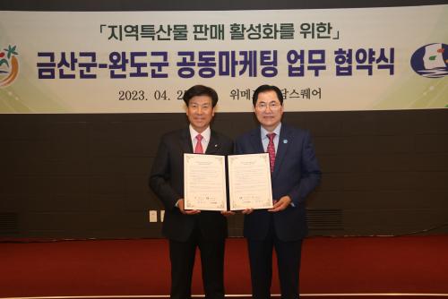 [½Åµ¿¾Æ¹æ¼Û=À̼±Á¾ ±âÀÚ] ¿Ïµµ±ºÀº 4¿ù 25ÀÏ ¼­¿ï À§¸ÞÇÁ ¼Ò´ã½ºÄù¾î¿¡¼­ ÃæÃ»³²µµ ±Ý»ê±º°ú ÇÔ²² Áö¿ª Ư»ê¹° ÆÇ·Î °³Ã´À» À§ÇÑ °øµ¿ ¸¶ÄÉÆÃ Çù·Â ü°è ±¸Ãà ¾÷¹« Çù¾à½ÄÀ» °¡Á³´Ù. ¿Ïµµ±º(±º¼ö ½Å¿ìö)°ú ±Ý»ê±º(±º¼ö ¹Ú¹üÀÎ)Àº ¾÷¹« Çù¾àÀ» ÅëÇØ ¿ÏµµÀüº¹°ú¡¦