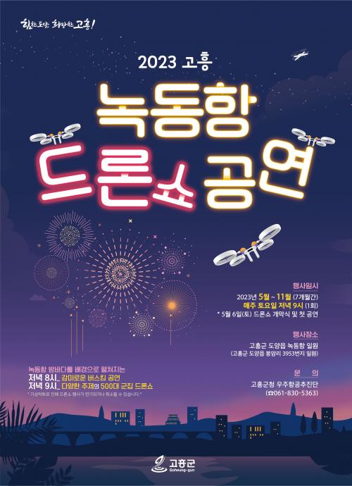 [½Åµ¿¾Æ¹æ¼Û=¹Ú±¤¿Á±âÀÚ] °íÈﱺ(±º¼ö °ø¿µ¹Î)ÀÌ ¿À´Â 5¿ù 6ÀÏ(Åä) Àú³á 9½Ã ³ìµ¿Ç× ¹Ù´ÙÁ¤¿ø¿¡¼­ ù ¼±º¸ÀÌ´Â ¡®2023 °íÈï ³ìµ¿Ç× µå·Ð¼î¡¯ »ó¼³°ø¿¬ Çà»ç°¡ 500´ë µå·Ð¶óÀÌÆ® ±ºÁý ºñÇà¼î¿Í ÇÔ²² È­·ÁÇÏ°Ô ¸·À» ¿Ã¸°´Ù°í ÀüÇß´Ù. ³ìµ¿Ç× µå·Ð¼î °ø¿¬Àº ¡®ÁöºØ¾ø´Â¡¦