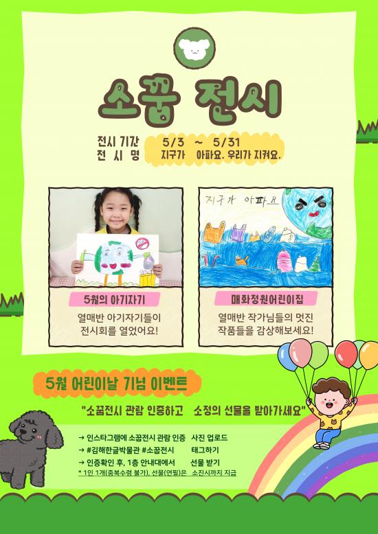 [½Åµ¿¾Æ¹æ¼Û´º½º=½Åµ¿È£±âÀÚ] ±èÇØÇѱ۹ڹ°°ü¿¡¼­´Â 5¿ù 3ÀϺÎÅÍ 31ÀϱîÁö Á¦1ȸ ÀÛÀºÈ­¶û Àü½Ã ¼Ò²ßÀü½Ãȸ°¡ °³ÃÖµÈ´Ù°í ¹àÇû´Ù. À̹ø ¼Ò²ßÀü½Ãȸ´Â ±èÇØÇѱ۹ڹ°°ü¿¡¼­ óÀ½ °³ÃֵǴ Àü½Ã·Î ¸ÅÈ­Á¤¿ø¾î¸°ÀÌÁý(±èÇØ½Ã ¼ÒÀç)ÀÇ ¡®¾Æ±âÀڱ⡯´ÔµéÀÌ Á÷Á¢ ¸¸µç ÀÛǰ ¡¦