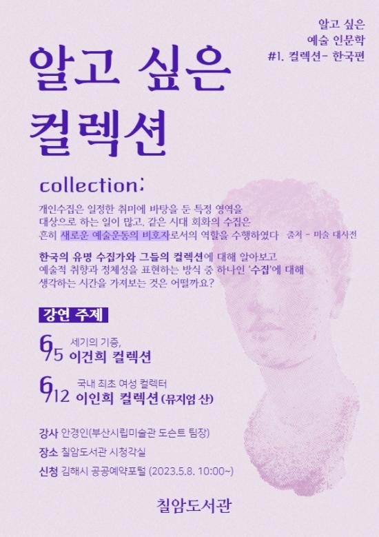 [½Åµ¿¾Æ¹æ¼Û´º½º=½Åµ¿È£±âÀÚ] ±èÇØ½Ã¸³ Ä¥¾Ïµµ¼­°üÀº ³»´Þ 5ÀϺÎÅÍ 12ÀϱîÁö ÃÑ 2ȸ¿¡ °ÉÃÄ ¿¹¼úƯ¼ºÈ­ ÇÁ·Î±×·¥ ¡®¾Ë°í½ÍÀº Ä÷º¼Ç-Çѱ¹Æí¡¯ °­¿¬À» ÁøÇàÇÑ´Ù°í 3ÀÏ ¹àÇû´Ù. ¡®¾Ë°í½ÍÀº Ä÷º¼Ç-Çѱ¹Æí¡¯Àº ¡ã¡®¼¼±âÀÇ ±âÁõ¡¯À̶ó ºÒ¸®¸ç ¼¼°£ÀÇ ÁÖ¸ñÀ» ¹Þ¾Ò´ø »ï¼º¡¦