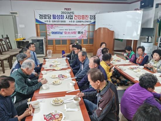 [½Åµ¿¾Æ¹æ¼Û´º½º=½Åµ¿È£±âÀÚ] (Àç)±èÇØ½Ãº¹ÁöÀç´Ü ±èÇØ½Ãµ¿ºÎ³ëÀÎÁ¾ÇÕº¹Áö°ü(°üÀå ·ùÀ纹)¿¡¼­´Â 5¿ù ¾î¹öÀ̳¯À» ¸ÂÀÌÇÏ¿© °æ·Î´çȰ¼ºÈ­»ç¾÷ ¾î¹öÀ̳¯ ±â³äÇà»ç¸¦ °¨Ãµ°æ·Î´ç(´ëµ¿¸é ¼ÒÀç)¿¡¼­ ÁøÇàÇÏ¿´´Ù. À̹ø °æ·Î´ç ¾î¹öÀ̳¯ Çà»ç¸¦ ÅëÇØ °æ·Î»ç»ó È®»ê°ú ¾î¹öÀÌ¡¦