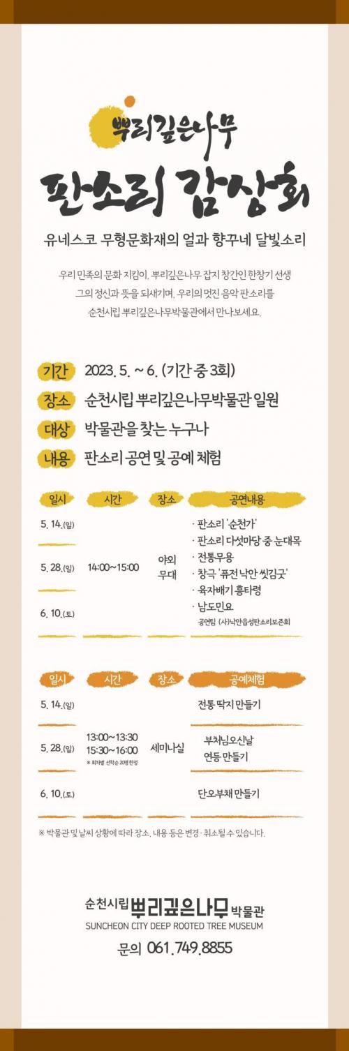 [½Åµ¿¾Æ¹æ¼Û=±è¿ëÈÆ ±âÀÚ] ¼øÃµ½Ã(½ÃÀå ³ë°ü±Ô)´Â ¿À´Â 14ÀÏ(ÀÏ), 28ÀÏ(ÀÏ), 6¿ù 10ÀÏ(Åä) ¿ÀÈÄ 2½Ã ¼øÃµ½Ã¸³»Ñ¸®±íÀº³ª¹«¹Ú¹°°ü ¾ß¿Ü¹«´ë¿¡¼­ ¡®»Ñ¸®±íÀº³ª¹« ÆÇ¼Ò¸® °¨»óȸ¡¯Çà»ç¸¦ °³ÃÖÇÑ´Ù. À̹ø Çà»ç´Â ÇÑâ±â ¼±»ýÀÌ ¿ì¸® ¼Ò¸®¸¦ º¸Á¸ÇÏ°í ³Î¸® ¾Ë¸®°íÀÚ 197¡¦