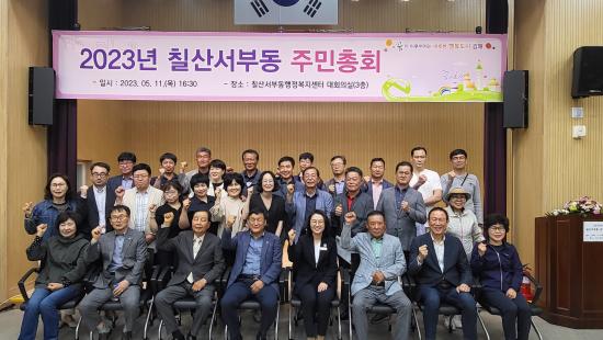 [½Åµ¿¾Æ¹æ¼Û´º½º=¾çÇýÁö±âÀÚ] Ä¥»ê¼­ºÎµ¿ ÁÖ¹ÎÃÑȸ°¡ 5¿ù 11ÀÏ ¿ÀÈÄ Ä¥»ê¼­ºÎµ¿ÇàÁ¤º¹Áö¼¾ÅÍ 3Ãþ ´ëȸÀǽǿ¡¼­ 100¿© ¸íÀÇ ÁֹεéÀÌ Âü¼®ÇÑ °¡¿îµ¥ ¼º°øÀûÀ¸·Î °³ÃֵǾú´Ù. À̹ø Ä¥»ê¼­ºÎµ¿ ÁÖ¹ÎÃÑȸ´Â Áö³­ 2022³â 12¿ù¿¡ Ãâ¹üÇÑ Ä¥»ê¼­ºÎµ¿ ÁÖ¹ÎÀÚġȸ(ȸÀå ÃÖ±Ô¿­¡¦