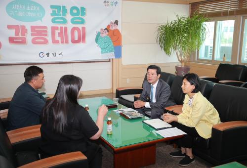 [½Åµ¿¾Æ¹æ¼Û=¹Ú±¤¿Á±âÀÚ] ±¤¾ç½Ã´Â 16ÀÏ(È­) Á¤ÀÎÈ­ ±¤¾ç½ÃÀå ÁÖÀç·Î 5¿ù Áß ¡®±¤¾ç °¨µ¿µ¥ÀÌ¡¯¸¦ ¿­°í ½Ã¹ÎµéÀÇ ´Ù¾çÇÑ ¸ñ¼Ò¸®¿¡ ±Í¸¦ ±â¿ï¿´´Ù°í ¹àÇû´Ù. ½Ã¹ÎÀÇ ½ÃÁ¤ Âü¿©ÀÇ ±âȸ¸¦ È®´ëÇϰíÀÚ ¸¶·ÃµÈ ¡®±¤¾ç °¨µ¿µ¥ÀÌ¡¯´Â ½Ã¹ÎÀÌ ½ÃÁ¤¹ßÀü ¹æ¾È, °íÃæ ¹× ¾Ö·Î»ç¡¦