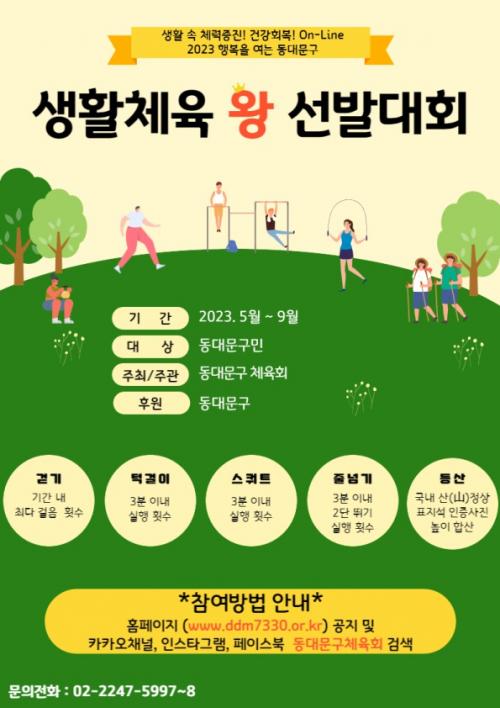 [½Åµ¿¾Æ¹æ¼Û µ¿´ë¹®=À̽ŵ¿±âÀÚ]µ¿´ë¹®±¸(±¸Ã»Àå ÀÌÇÊÇü)°¡ ÁÖ¹ÎÀÇ Ã¼·Âȸº¹°ú °Ç°­ÁõÁøÀ» À§ÇØ ¡®2023³â »ýȰüÀ°¿Õ¡¯À» ¼±¹ßÇÑ´Ù. µ¿´ë¹®±¸Ã¼À°È¸ ÁÖ°üÀ¸·Î ÁøÇàµÇ´Â ¡®»ýȰüÀ°¿Õ ¼±¹ß´ëȸ¡¯´Â 3³â°¡·® Áö¼ÓµÈ Äڷγª19·Î ½ÅüȰµ¿ÀÌ °¨¼ÒÇÑ ±¸¹ÎµéÀÇ Ã¼·Â°ú °Ç°­¡¦