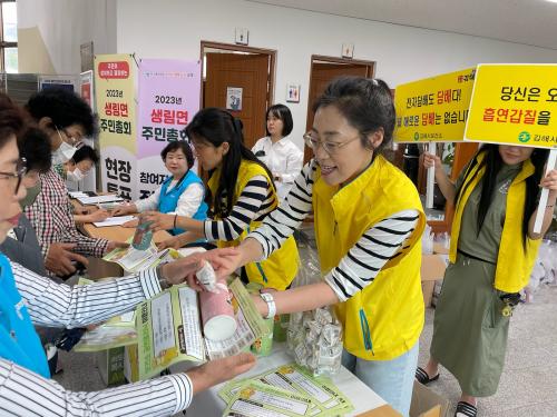 [½Åµ¿¾Æ¹æ¼Û´º½º=¾çÇýÁö±âÀÚ] ±èÇØ½Ã »ý¸²¸éº¸°ÇÁö¼Ò´Â ¿À´Â 31ÀÏ Á¦36ȸ [¼¼°è ±Ý¿¬ÀÇ ³¯]À» ¸ÂÀÌÇÏ¿© Áö¿ª»çȸ ±Ý¿¬ ȯ°æ Á¶¼ºÀ» À§ÇØ »ý¸²¸é °Ç°­À§¿øÈ¸ À§¿ø´Ôµé°ú ÇÔ²² Áö³­ 26ÀÏ »ý¸²¸é ÁÖ¹ÎÃÑȸ ¹× »ý¸² ³óÇù ÀÏ¿ø¿¡¼­ ±Ý¿¬ È«º¸ Ȱµ¿À» ½Ç½ÃÇÏ¿´´Ù. ¸Å³â 5¿ù¡¦
