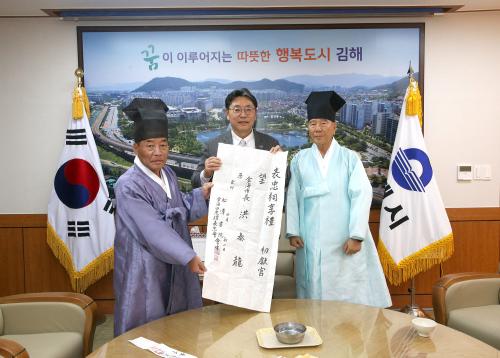 [½Åµ¿¾Æ¹æ¼Û´º½º=ÃÖ¼ÛÈ­±âÀÚ] ±èÇØ½Ã´Â 30ÀÏ ±èÇØÇâ±³ ¼Û¿ìÁø Àü±³, ±èÇØÇâ±³ ±è°æ±Ô Ãѹ« ¼ö¼® ÀåÀǰ¡ ½ÃûÀ» ¹æ¹®ÇØ È«ÅÂ¿ë ½ÃÀå¿¡°Ô »çÃæ´Ü Á¦·Ê ÃÊÇå°ü(ù ¹øÂ° ÀÜÀ» ¿Ã¸®´Â Á¦°ü)À¸·Î Ãß´ëÇϴ õ±Ç(ÃßõÀå)À» Àü´ÞÇß´Ù°í ¹àÇû´Ù. »çÃæ´Ü Á¦·Ê´Â ÀÓÁø¿Ö¶õ ÃÖÃÊ¡¦