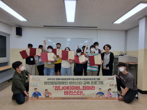 [½Åµ¿¾Æ¹æ¼Û´º½º=ÃÖ¼ÛÈ­±âÀÚ] 2023³â 6¿ù 1ÀÏ (Àç)±èÇØ½Ãº¹ÁöÀç´Ü ±èÇØ½ÃÀå¾ÖÀÎÁ¾ÇÕº¹Áö°ü ÈÆ·Ã»ý(¼ºÀιߴÞÀå¾ÖÀÎ) 12¸íÀÌ ¹Ù¸®½ºÅ¸ 2±Þ ÀÚ°ÝÁõÀ» ÃëµæÇß´Ù. ±èÇØ½ÃÀå¾ÖÀÎÁ¾ÇÕº¹Áö°ü¿¡ µû¸£¸é Áö³­ 4¿ùºÎÅÍ 5¿ù±îÁö ±èÇØ½Ã¿ì¼öÆò»ýÇнÀÇÁ·Î±×·¥ °ø¸ð»ç¾÷À» ÅëÇØ ¹Ù¡¦
