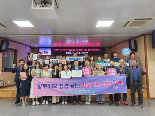 [½Åµ¿¾Æ¹æ¼Û´º½º=ÃÖ¼ÛÈ­±âÀÚ] ÀåÀ¯1µ¿, ÁÖ¹ÎÀÚġȸ¿Í û·Å ½Çõ ´ÙÁü ±èÇØ½Ã ÀåÀ¯1µ¿ ÇàÁ¤º¹Áö¼¾ÅÍ(µ¿Àå ¼­Áø¼÷)´Â 7ÀÏ ÀåÀ¯1µ¿ ÁÖ¹ÎÀÚġȸ(ȸÀå À̺´¿µ) À§¿øµé°ú ÇÔ²² ¡®´õ(THE) û·ÅÇÑ µµ½Ã ±èÇØ¡¯±¸ÇöÀ» À§ÇÑ Ã»·Å´ÙÁüÀ» ÇÏ¿´´Ù. À̳¯ ÀÚġȸÀ§¿øµé°ú û·Å¡¦