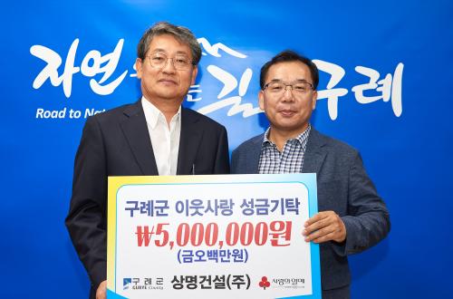 [½Åµ¿¾Æ¹æ¼Û=À±¼ºÁÖ ±âÀÚ] Àü³² ±¸·Ê±ºÀº Áö³­ 8ÀÏ »ó¸í°Ç¼³(ÁÖ)¿¡¼­ °ü³» ¾î·Á¿î ÀÌ¿ôÀ» À§ÇØ ¼º±Ý 5¹é¸¸ ¿øÀ» ±âŹÇß´Ù°í ¹àÇû´Ù. »ó¸í°Ç¼³(ÁÖ) ¼­µ¿Âù ´ëÇ¥ÀÌ»ç´Â ¡°°ü³» ¾î·Á¿î ÀÌ¿ô¿¡°Ô Á¶±ÝÀ̳ª¸¶ µµ¿òÀÌ µÉ ¼ö Àֱ⸦ ¹Ù¶ó´Â ¸¶À½¿¡ ¼º±ÝÀ» ÁغñÇß´Ù¡±¸ç, ¡°¡¦