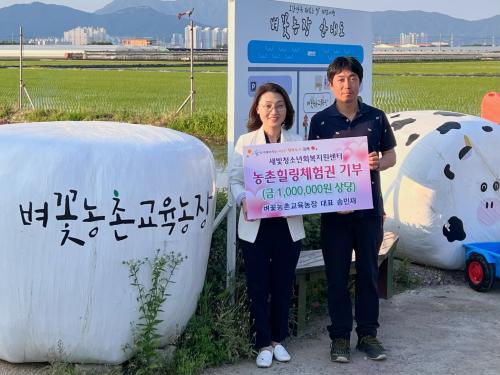 [½Åµ¿¾Æ¹æ¼Û´º½º=¾çÇýÁö±âÀڣݱèÇØ½Ã È­¸ñµ¿ ¼ÒÀç º­²É³óÃ̱³À°³óÀå(´ëÇ¥ ¼Û¹ÎÀç)¿¡¼­ »õºûû¼Ò³âȸº¹Áö¿ø¼¾ÅÍ¿¡¼­ »ýȰ ÁßÀΠû¼Ò³âµéÀ» À§ÇØ ³óÃÌÈú¸µÃ¼Çè±Ç 30Àå(100¸¸¿ø »ó´ç)À» Ä¥»ê¼­ºÎµ¿ ÇàÁ¤º¹Áö¼¾ÅÍ¿¡ ±âŹÇß´Ù. º­²É³óÃ̱³À°³óÀåÀº ¡¸2019³â ±èÇØ½Ã º­ ¡¦