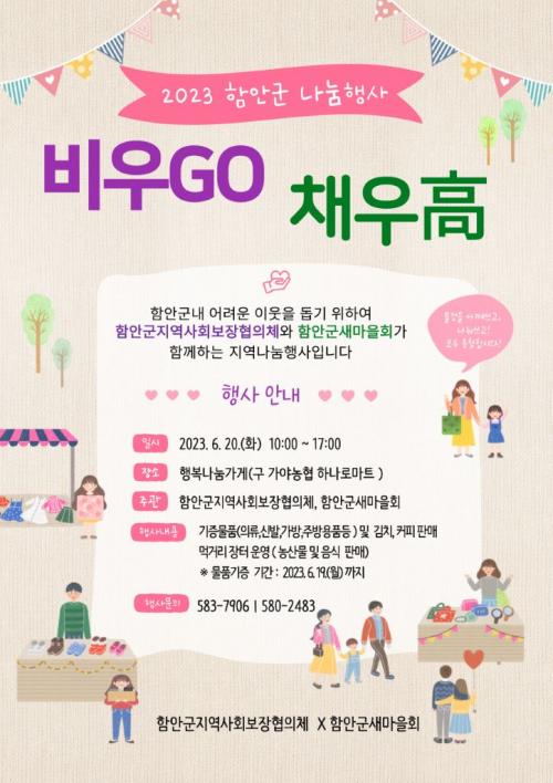 [ÇÔ¾È ½Åµ¿¾Æ¹æ¼Û=À̽ŵ¿±âÀÚ]ÇԾȱºÀº ³ª´® ¹®È­ È®»êÀ» À§ÇØ ¿À´Â 20ÀÏ(È­) Çູ³ª´®°¡°Ô ³»(±¸ °¡¾ß³óÇù Çϳª·Î¸¶Æ®)¿¡¼­ ¡®ºñ¿ìGO ä¿ìÍÔ ³ª´®Çà»ç¡¯¸¦ °³ÃÖÇÑ´Ù°í ¹àÇû´Ù. ¡®ºñ¿ìGO ä¿ìÍÔ ³ª´® Çà»ç¡¯´Â â°í³ª ¿ÊÀå µîÀ» ºñ¿ö¼­ ³ª´©°í ÀÌ¿ô»ç¶ûÀ» ä¿ìÀÚ´Â ¡¦