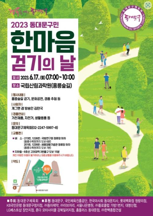 [½Åµ¿¾Æ¹æ¼Û µ¿´ë¹®=À̽ŵ¿±âÀÚ]µ¿´ë¹®±¸°¡ ±¸¹ÎÀÇ °Ç°­ ÁõÁø°ú È­ÇÕÀ» À§ÇØ ¿À´Â 17ÀÏ ¿ÀÀü 7½Ã ±¹¸³»ê¸²°úÇпø È«¸ª½£¿¡¼­ °¡Á·°ú ÇÔ²²ÇÏ´Â ¡®±¸¹Î ÇѸ¶À½ °È±âÀÇ ³¯¡¯ Çà»ç¸¦ °³ÃÖÇÑ´Ù. µ¿´ë¹®±¸Ã¼À°È¸°¡ ÁÖÃÖÇÑ À̹ø Çà»ç´Â µ¿´ë¹®±¸¿Í ±¹¹ÎüÀ°ÁøÈï°ø´Ü, Çѱ¹¸¶¡¦