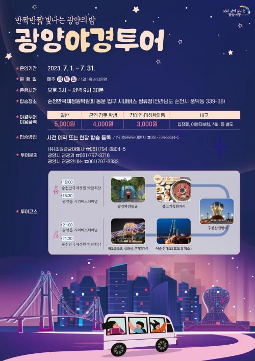 [½Åµ¿¾Æ¹æ¼Û=¹Ú±¤¿Á±âÀÚ] ³·°ú ¹ãÀÌ ºû³ª´Â ±¤¾ç½ÃƼÅõ¾î°¡ È­·ÁÇÏ°Ô ¹Ý¦ÀÌ´Â ¾ß°æÀ¸·Î ¶ß°Å¿î 7¿ù ÁÖ¸»À» Ã¥ÀÓÁú Àü¸ÁÀÌ´Ù. ±¤¾ç½Ã°¡ 7¿ù ÇÑ ´Þ°£ ÁÖ¸»(±Ý~ÀÏ¿äÀÏ) ¿ÀÈÄ 3½Ã, ¼øÃµ¸¸±¹°¡Á¤¿ø¿¡¼­ ¿¹¾à ¾øÀÌ Å¾½ÂÇÒ ¼ö Àִ Ưº°ÇÑ ±¤¾ç¾ß°æ½ÃƼÅõ¾î¸¦ ¿î¿µÇÑ´Ù°í ¡¦