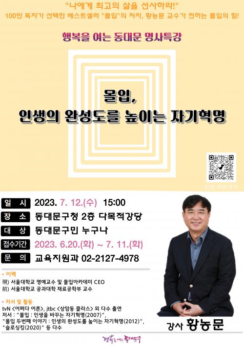 [½Åµ¿¾Æ¹æ¼Û µ¿´ë¹®=À̽ŵ¿±âÀÚ] µ¿´ë¹®±¸´Â 7¿ù 12ÀÏ(¼ö) ¿ÀÈÄ 3½Ã µ¿´ë¹®±¸Ã» 2Ãþ ´Ù¸ñÀû °­´ç¿¡¼­ Ȳ³ó¹® ¼­¿ï´ëÇб³ ¸í¿¹±³¼ö¸¦ ÃÊÃ»ÇØ¡º¸ôÀÔ, ÀλýÀÇ ¿Ï¼ºµµ¸¦ ³ôÀÌ´Â ÀÚ±âÇõ¸í¡»À» ÁÖÁ¦·Î ¡®µ¿´ë¹® ¸í»çƯ°­¡¯À» ÁøÇàÇÑ´Ù. Ȳ³ó¹® ±³¼ö´Â ¾à 20³â µ¿¾È ¼­¿ï´ëÇС¦