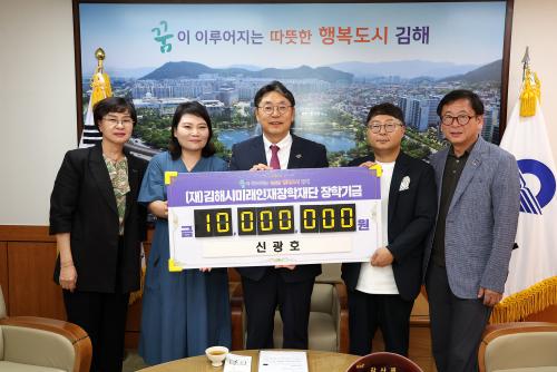 [½Åµ¿¾Æ¹æ¼Û´º½º=¾çÇýÁö±âÀÚ]±èÇØ½Ã¹Ì·¡ÀÎÀçÀåÇÐÀç´Ü(ÀÌ»çÀå ÇöÁ¾¿ø)Àº 26ÀÏ ½Å±¤È£(49)¾¾°¡ ÀåÇбâ±Ý 1õ¸¸¿øÀ» ±âºÎÇß´Ù°í ¹àÇû´Ù ½Å¾¾´Â ¡°¸Å¹ø ȸ»ç³ª ´Üü·Î ºÀ»çȰµ¿À» ÇØ ¿ÔÁö¸¸ À̹ø¿¡´Â °³ÀÎÀûÀ¸·Î ÀåÇбâ±ÝÀ» ±âŹÇÏ°Ô µÇ¾ú´Ù¡±¸ç ¡°ÇлýµéÀÌ Çо÷À» À̾¡¦