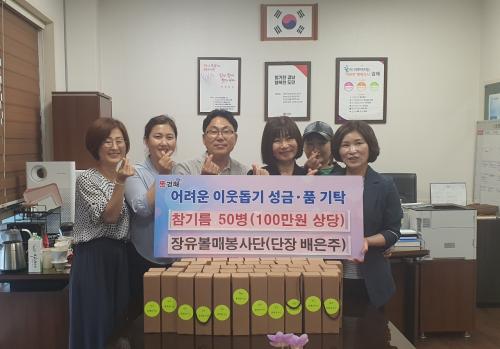 [½Åµ¿¾Æ¹æ¼Û´º½º=¾çÇýÁö±âÀÚ] ±èÇØ½Ã ÀåÀ¯2µ¿ÇàÁ¤º¹Áö¼¾ÅÍ¿¡¼­´Â Áö³­ 6¿ù 26ÀÏ ÀåÀ¯º¼¸ÅºÀ»ç´Ü(´ÜÀå ¹èÀºÁÖ)¿¡¼­ °ü³» ¾î·Á¿î ÀÌ¿ô¿¡°Ô Àü´ÞÇØ ´Þ¶ó¸ç 100¸¸¿ø »ó´çÀÇ Âü±â¸§ 50º´À» ±âŹÇß´Ù°í ¹àÇû´Ù. 2021³â 1¿ù¿¡ °á¼ºµÈ ÀåÀ¯º¼¸ÅºÀ»ç´ÜÀº ¾î·Á¿î ÀÌ¿ôÀ» µ½±â ¡¦